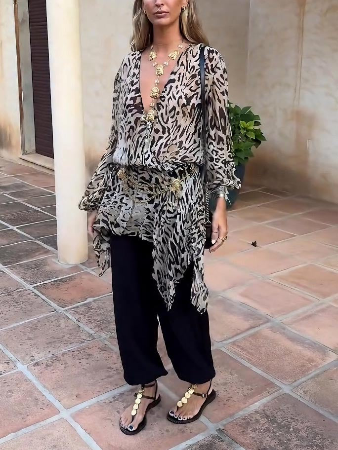 Elegantna maksi haljina A-kroja s V-izrezom i oslikanim cvjetnim printom