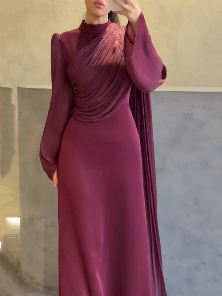 Elegantna plisirana maksi haljina A-kroja bez naramenica