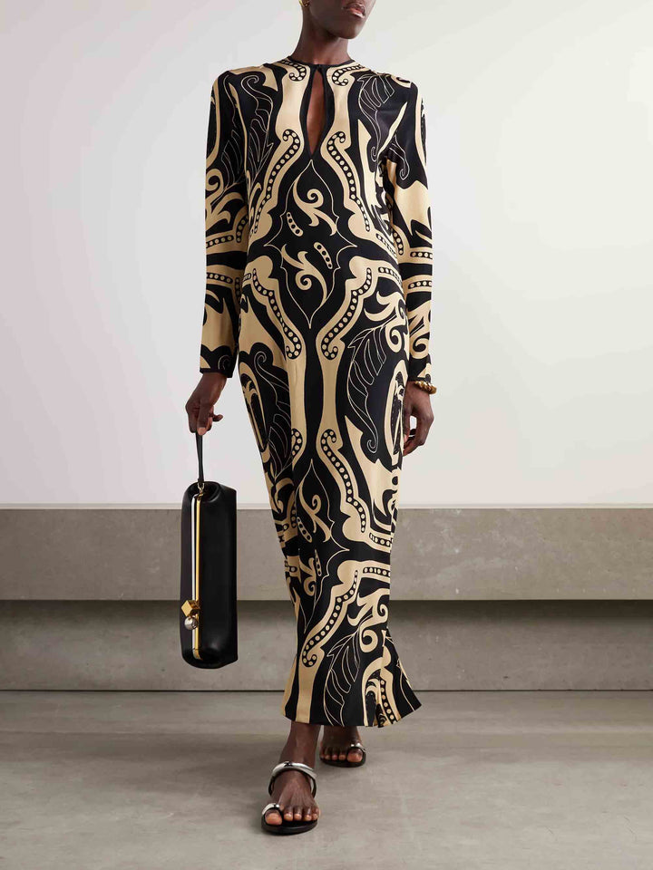 Step into vintage charm with this retro-inspired maxi dress, featuring a lush botanical print that brings nature's elegance to life. The long sleeves and flowing silhouette offer both coverage and grace, while the lightweight fabric ensures effortless movement. Perfect for brunches, countryside escapes, or artful everyday style, this dress is a timeless ode to natural beauty with a nostalgic twist.