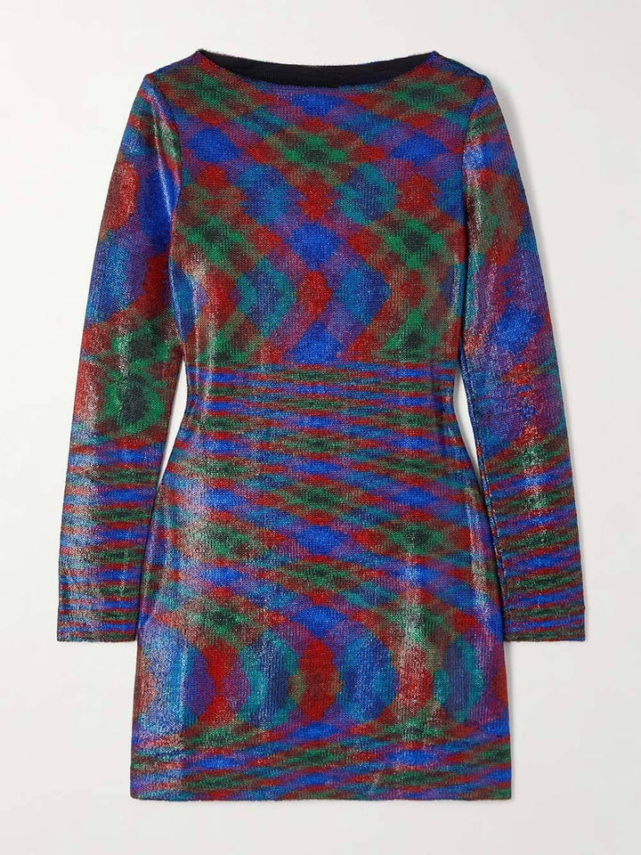 Unique Striped Metallic Print Mini Dress