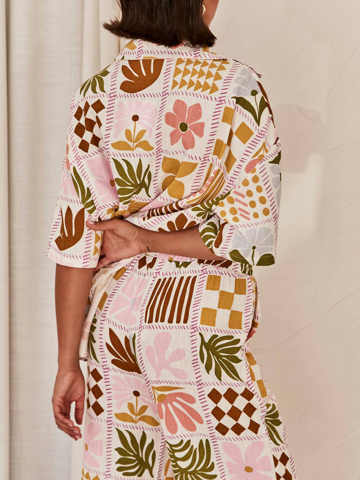 Izrađena od visokokvalitetne tkanine, ova bluza ima labavu siluetu koja lijepo prianja uz tijelo, pružajući eleganciju i lakoću kretanja. Jedinstveni otisnuti dizajn dodaje dašak sofisticiranosti, čineći ga jedinstvenim komadom za svaku priliku.
