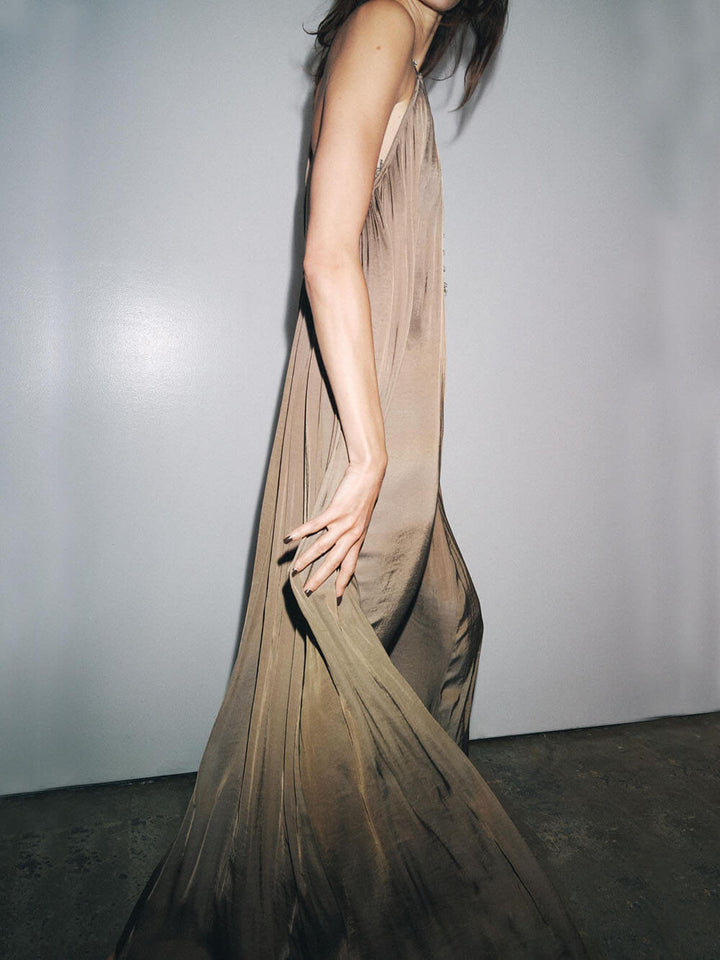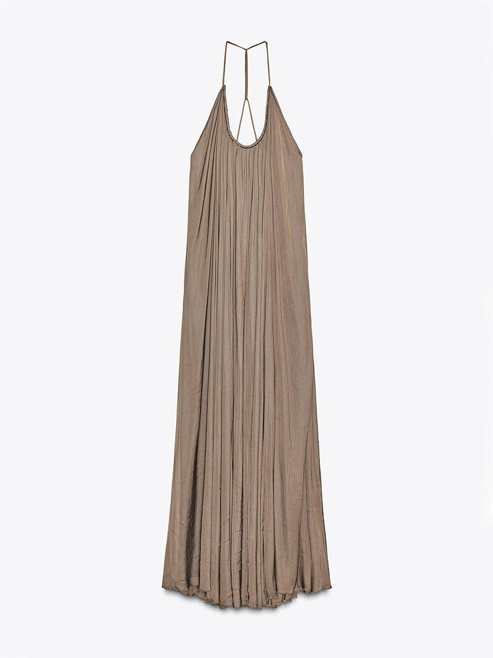 Elegant Pleated V-Neck Halter Maxi Dress