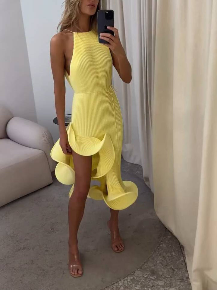 Elegant Three-layer Ruffle Sling Maxi Dress