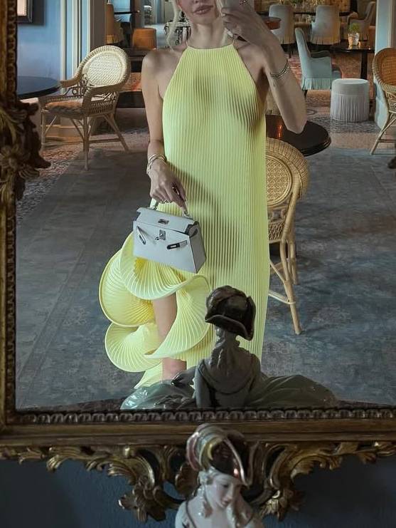 Elegante maxi abito con bretelle a pois senza schienale francese sottile INS