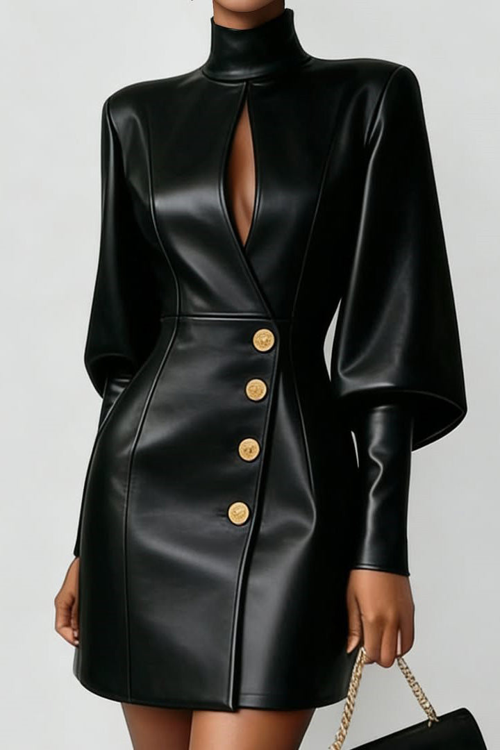 Hollow Design Leather Mini Dress
