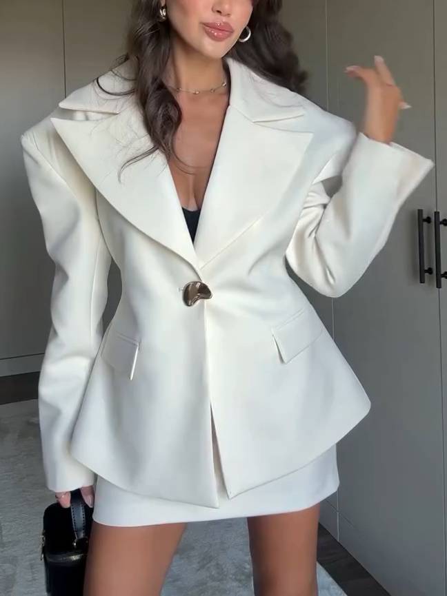 Wide Shoulder Waisted Blazer And Mini Skirt Suit - Blazer