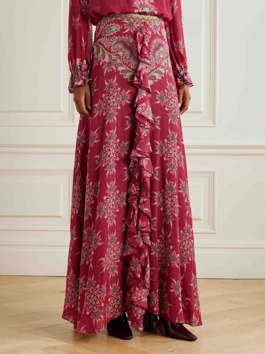 Exquisite Paisley Print Pleated Chiffon Skirt