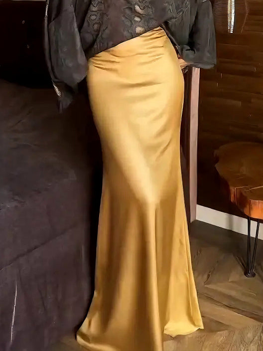 Elegant Pleated Satin Mermaid Maxi Skirt