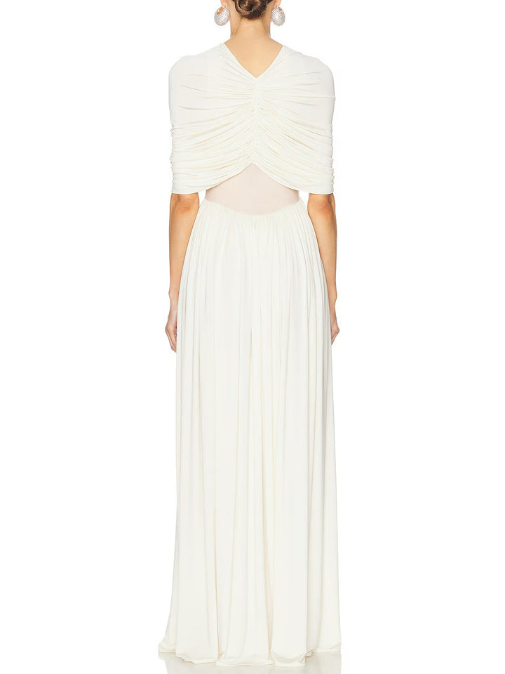 Graceful and timeless, this elegant maxi dress features a flattering V-neckline and flowing pleated design that enhances every movement. Crafted from lightweight, airy fabric, it drapes beautifully to create a soft and feminine silhouette. Perfect for formal events, romantic evenings, or any occasion that calls for effortless sophistication.