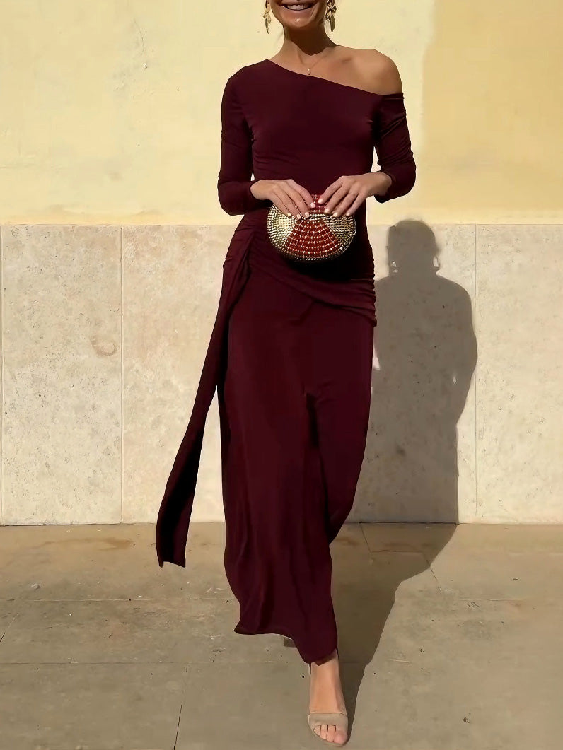 Elegant One-shoulder Slit Maxi Dress