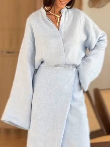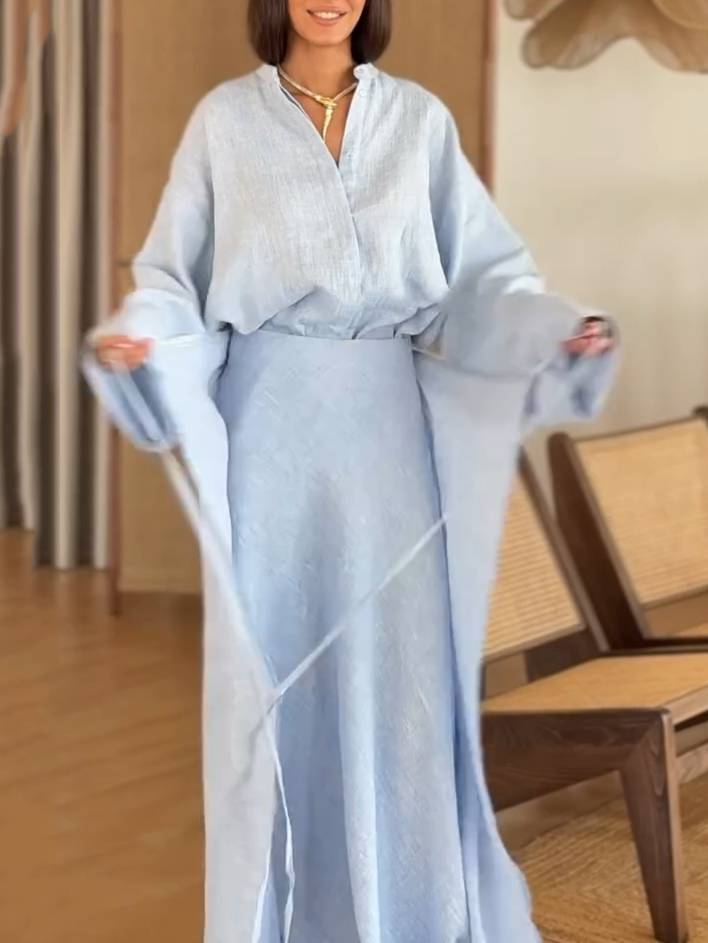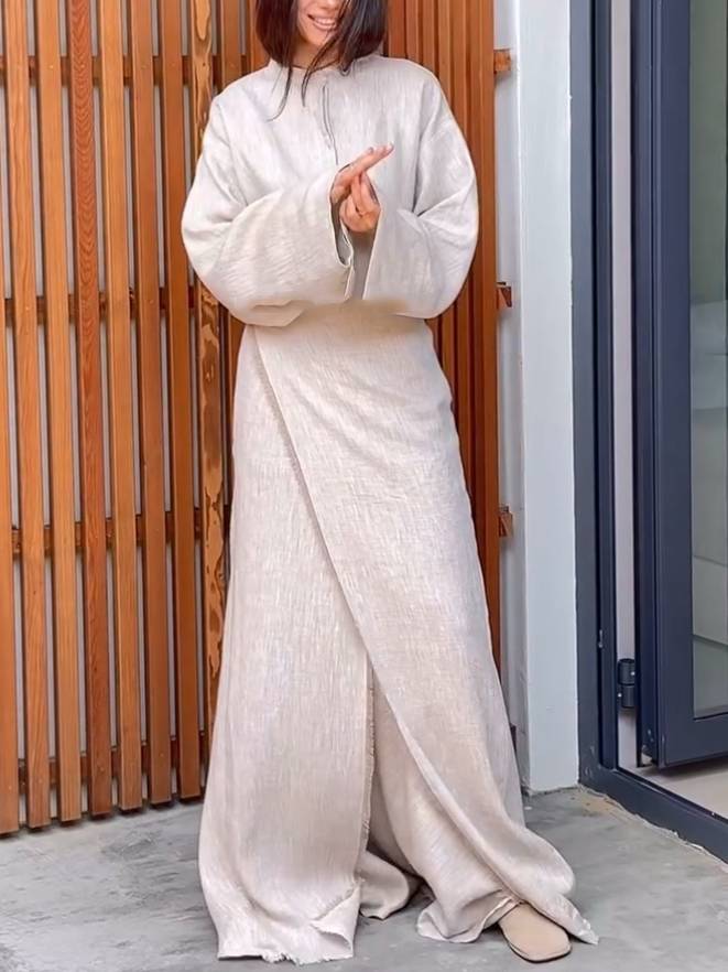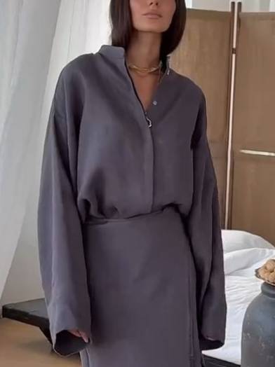 Klassieke modieuze losse trui met ronde hals en gebreide strik