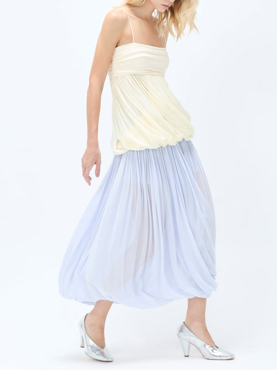 This statement lantern skirt showcases a chic draped wrap silhouette, combining structure and fluidity for a modern, fashion-forward look. Perfect for adding a touch of elegance to any ensemble.