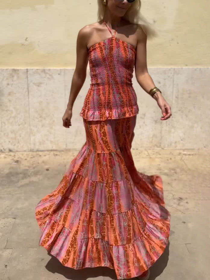 Embrace effortless charm with this relaxed low-rise tiered maxi dress, adorned with a
