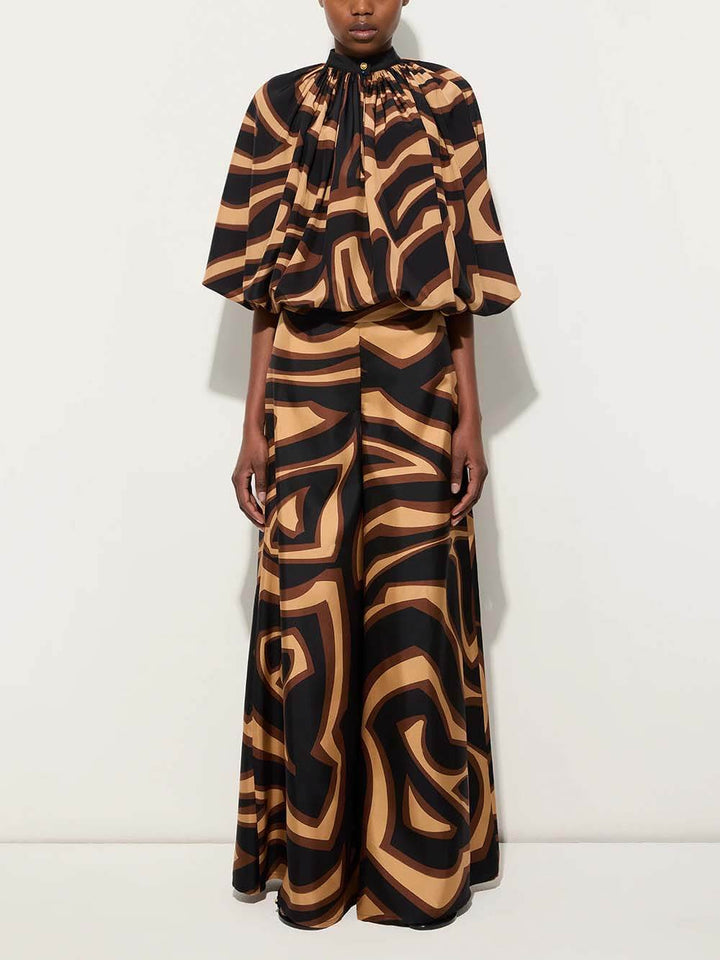 Unique Swirl Print Satin Twill High-Waist Wide-Leg Pants