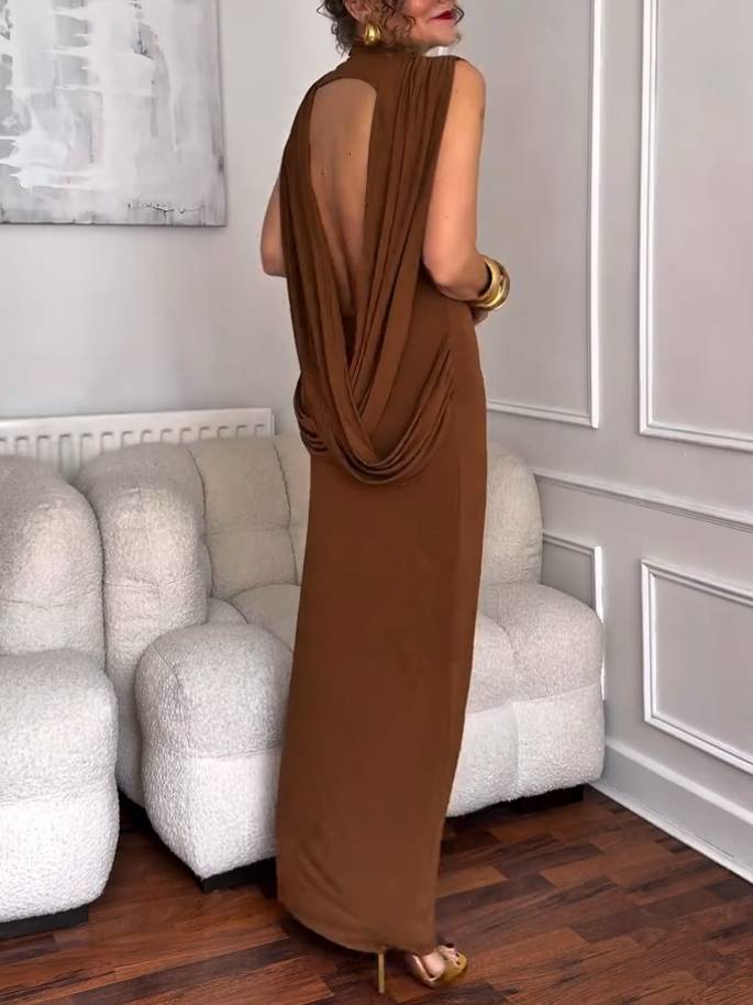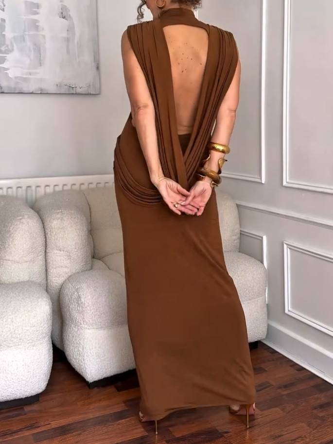 Elegant V-hals Ryggløs Lace-Up uthulet Slim Maxi-kjole