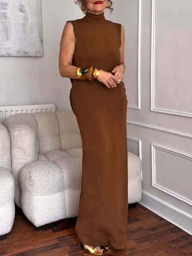 Elegant stroppeløs A-linje plissert maxi-kjole
