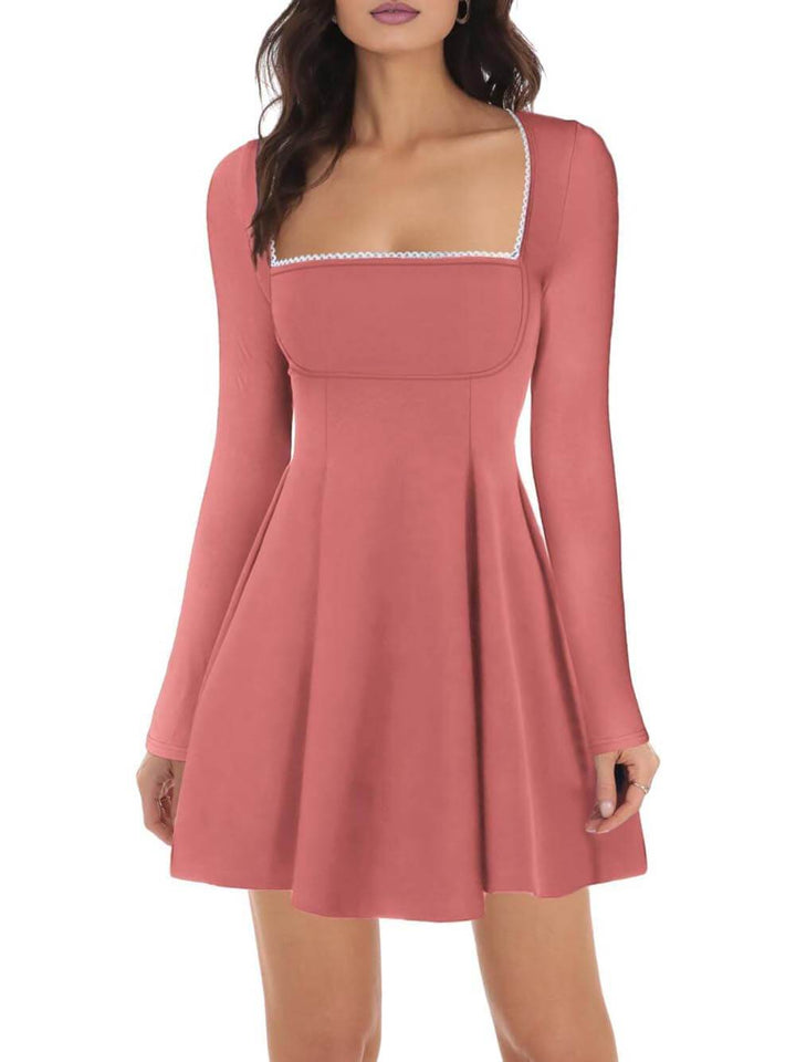 Vær stilig og komfortabel i vår klassiske og elegante Square Neck Trim A-Line Ruffle Mini Dress.