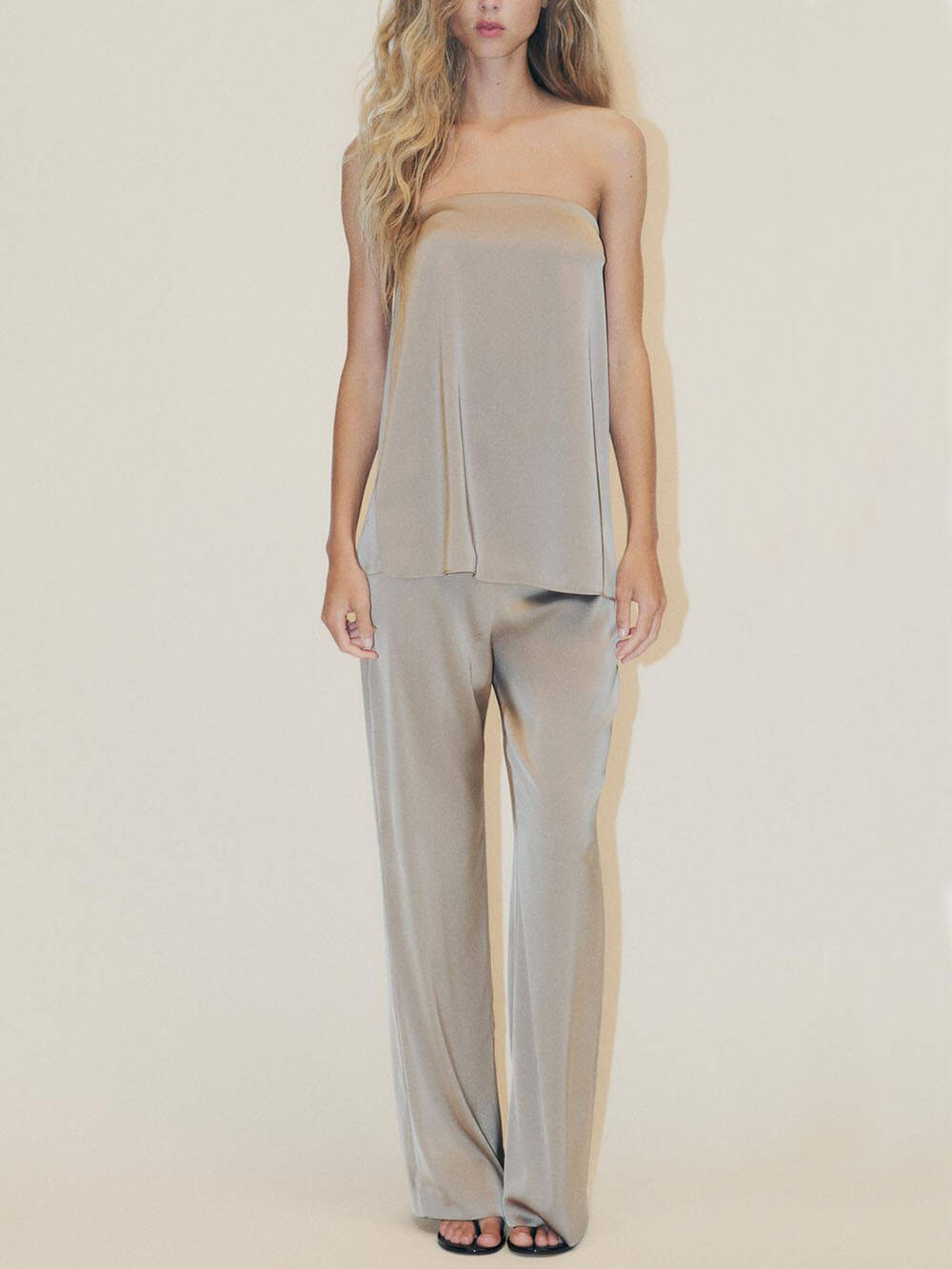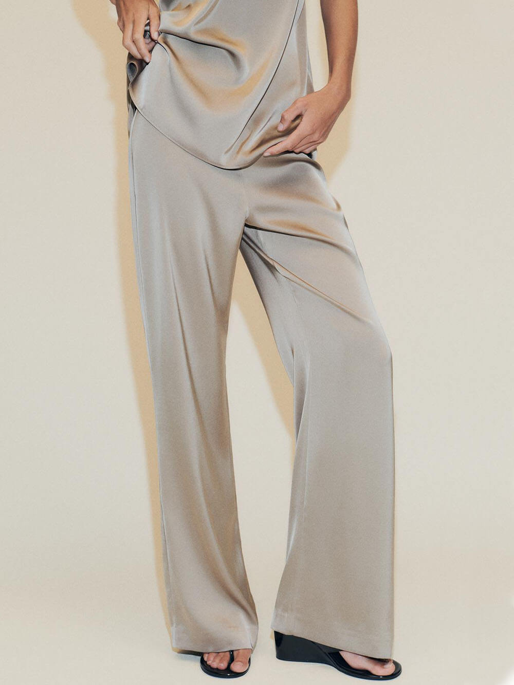 Elegant Satin Elastic-Waist Straight-Leg Pants
