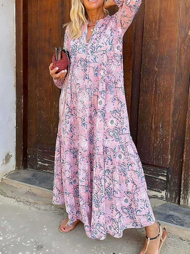 Fashionable Floral Print Loose V-Neck Holiday Maxi Dress