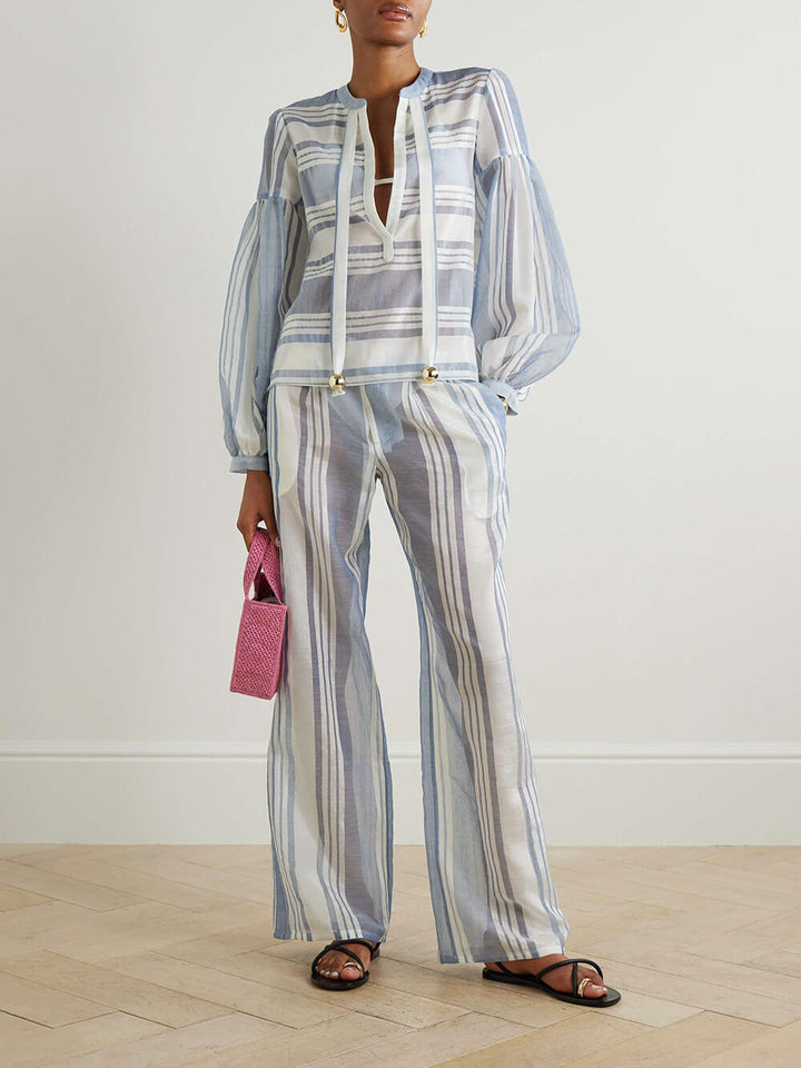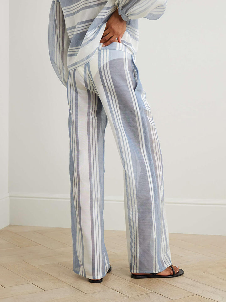 Effortlessly channel vintage charm with our Retro Embellished Striped Print Gauze Shirt. The relaxed silhouette and soft texture make it a go-to for easy layering and all-day comfort.