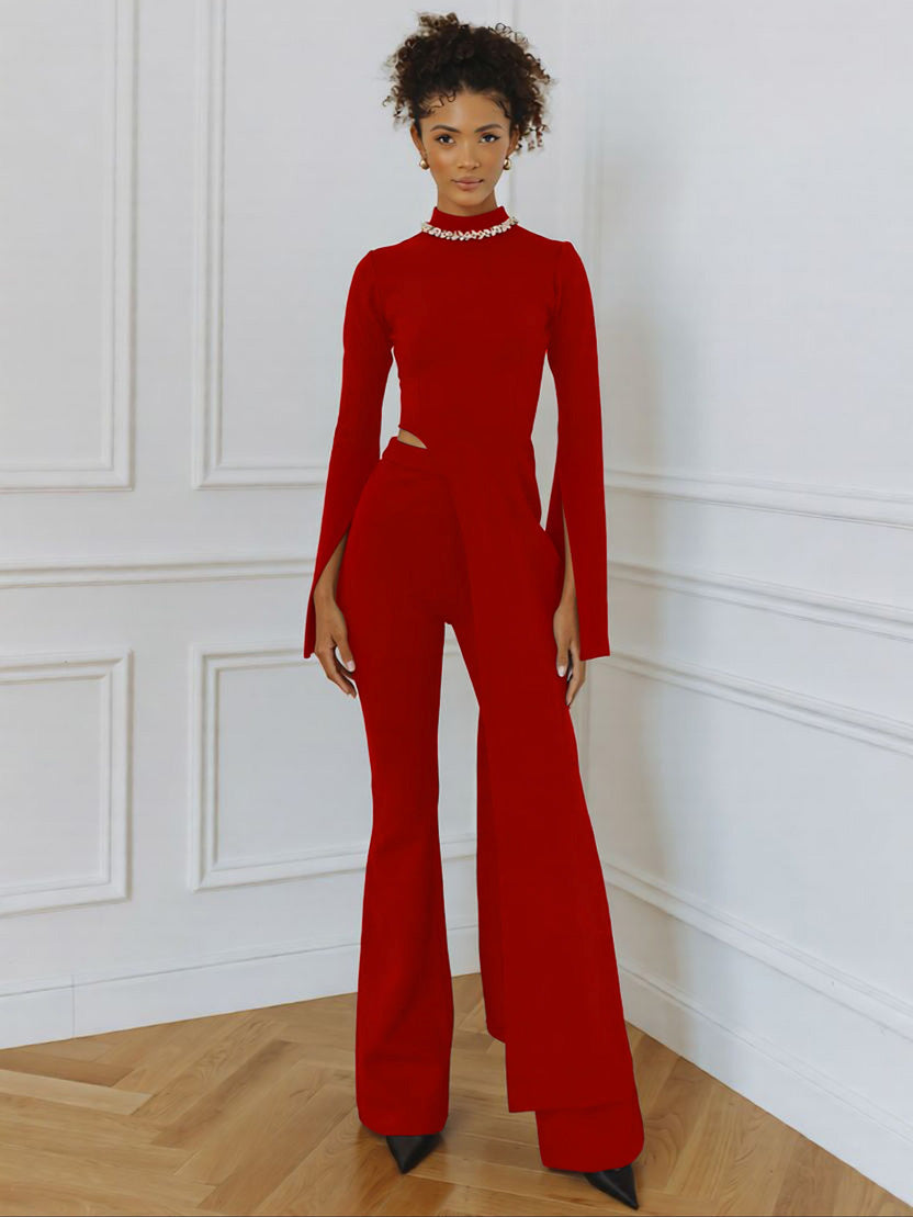 Elegant High-Neck Jumpsuit And Skirt Two-Piece Set