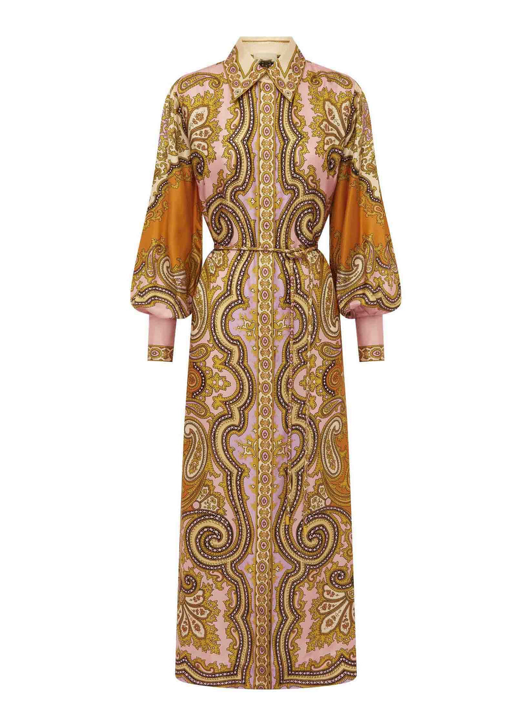 Exquisite Satin Unique Paisley Print Button Maxi Dress