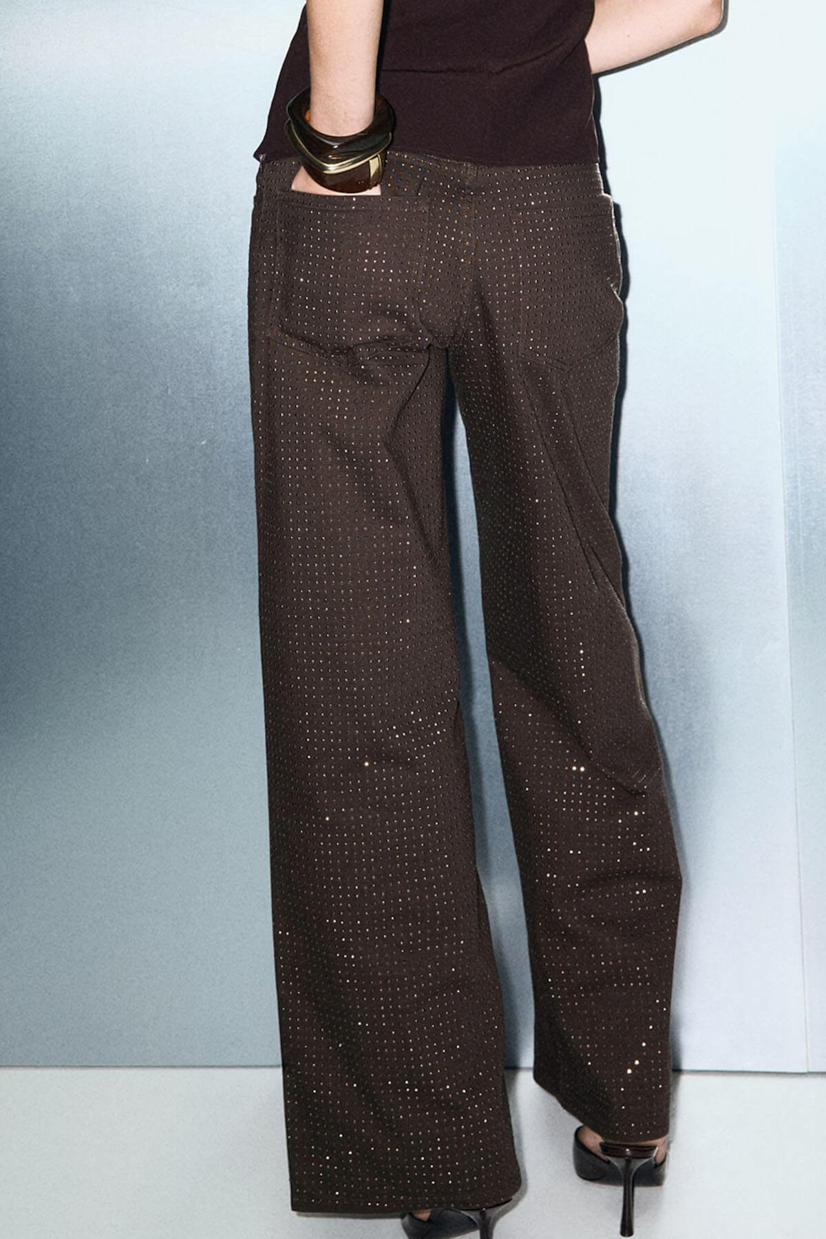 Unique Sparkling Rhinestone-Embellished Wide-Leg Jeans