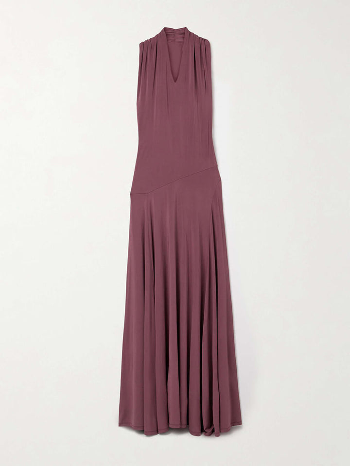 Elegant Gathered Stretch-Jersey Maxi Dress