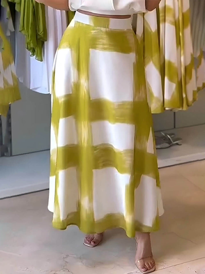 Classic Brushstroke Print Linen Pocket Skirt