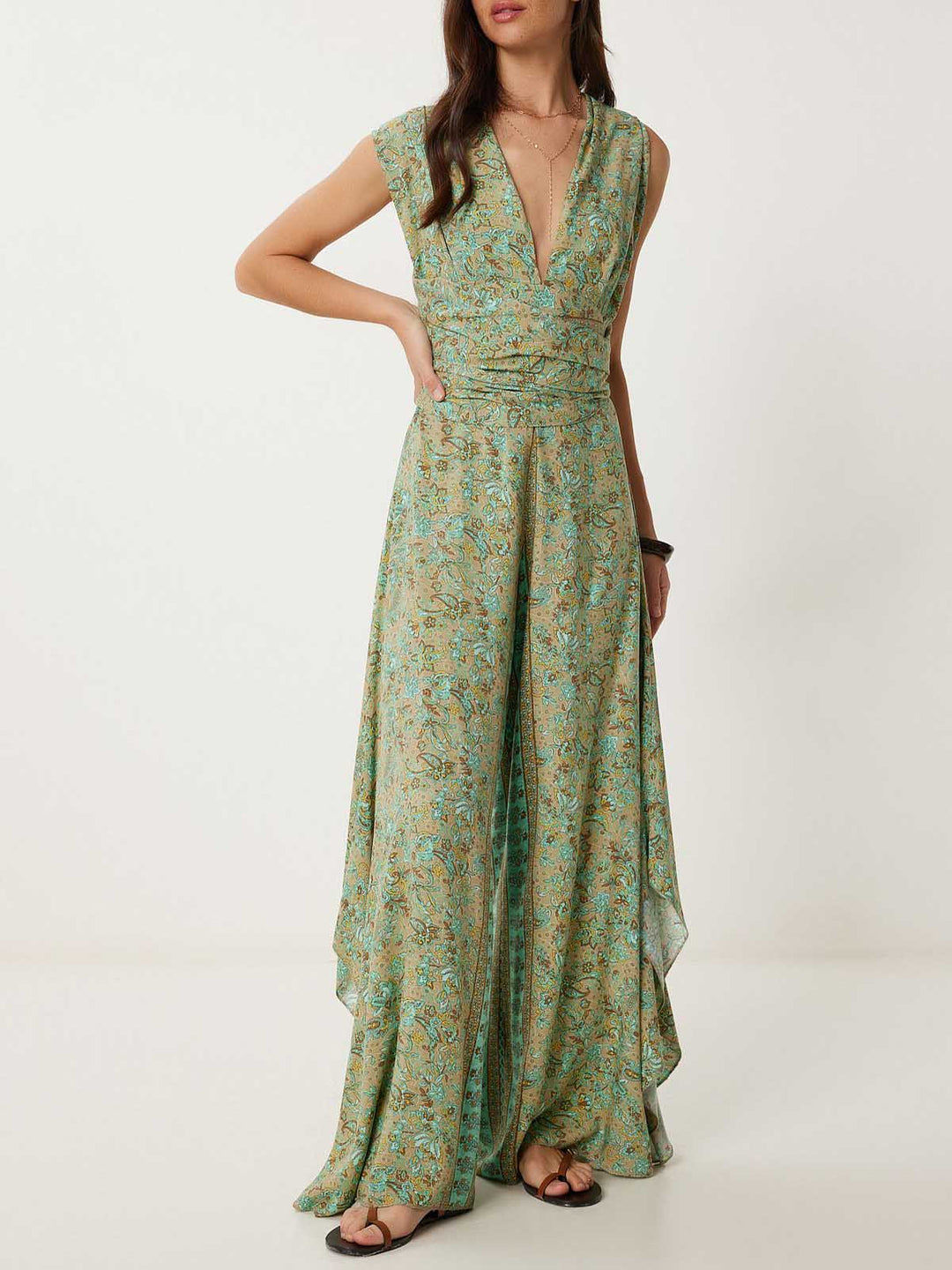 Bring a touch of bohemian style to your wardrobe with this retro paisley print jumpsuit that exudes vintage charm.