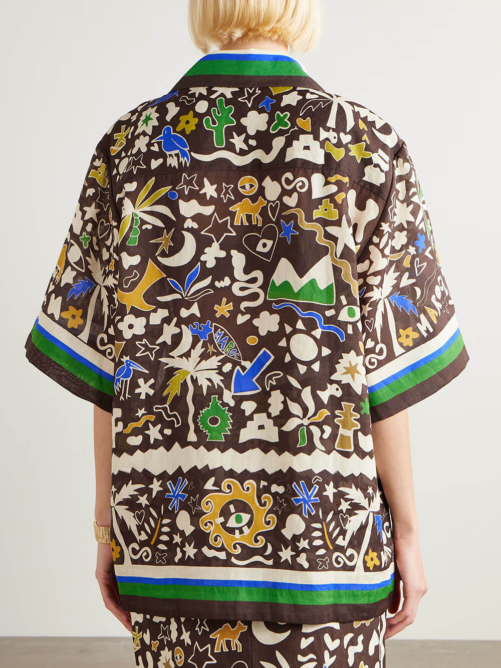 Unique Vintage Moroccan Print Linen Oversized Button-Up Shirt