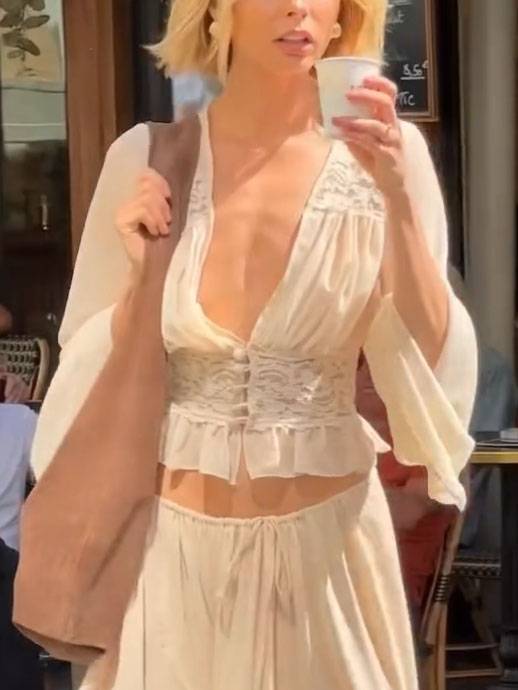 Bohemian Lace SPlicing Shirt And Skirt Set