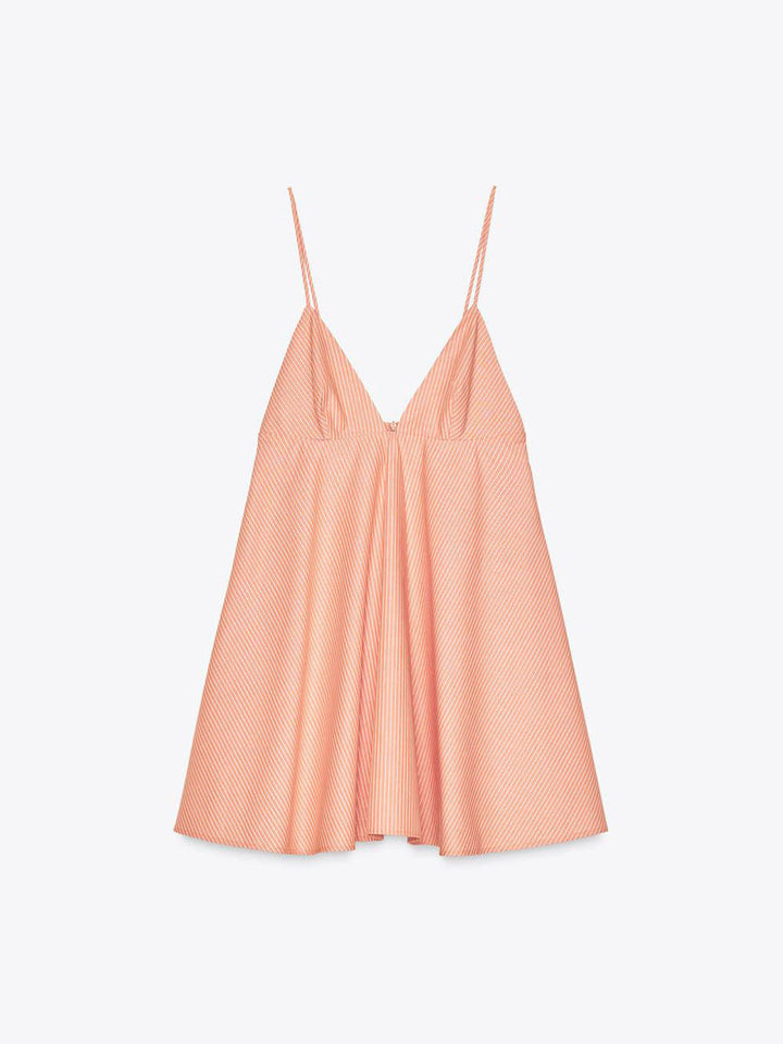 Stay stylish and comfortable in our sophisticated stripe print suspender mini dress.