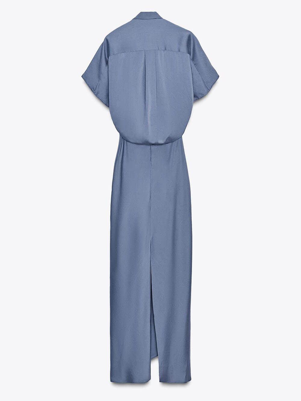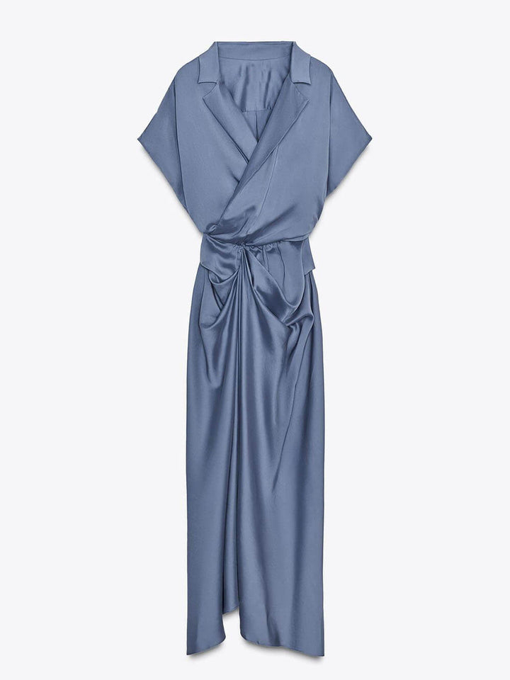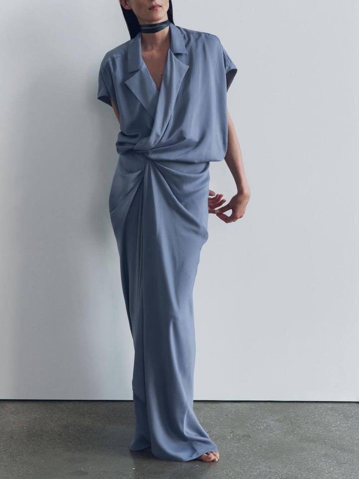 Elevate your style with this chic satin wrap dress. Designed with a flattering V-neckline, ruched details, and a sleek silhouette, it offers the perfect balance of elegance and modern allure. Ideal for evening events, date nights, or special occasions.