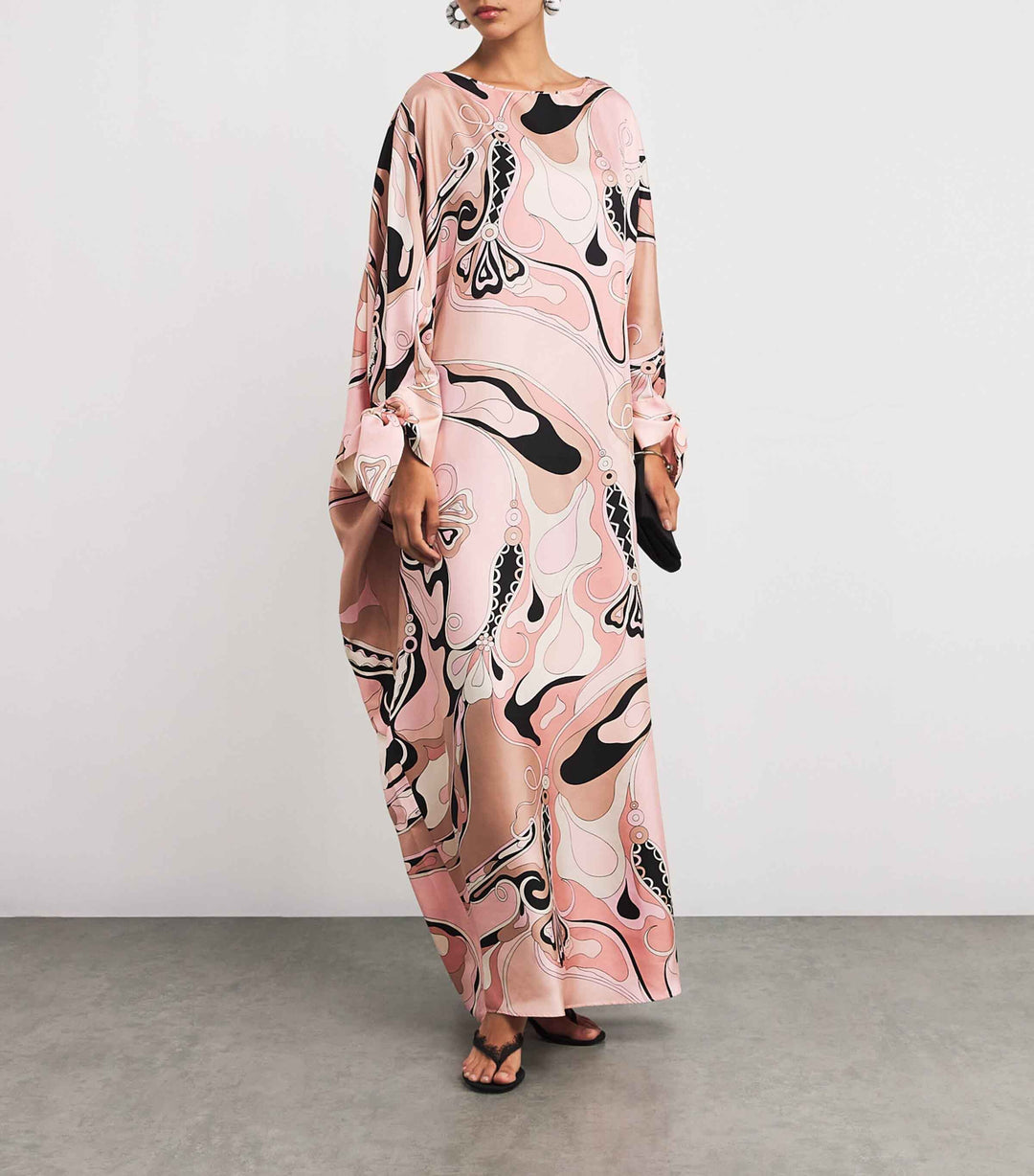 Exquisite Swirl Unique Print Satin Maxi Dress