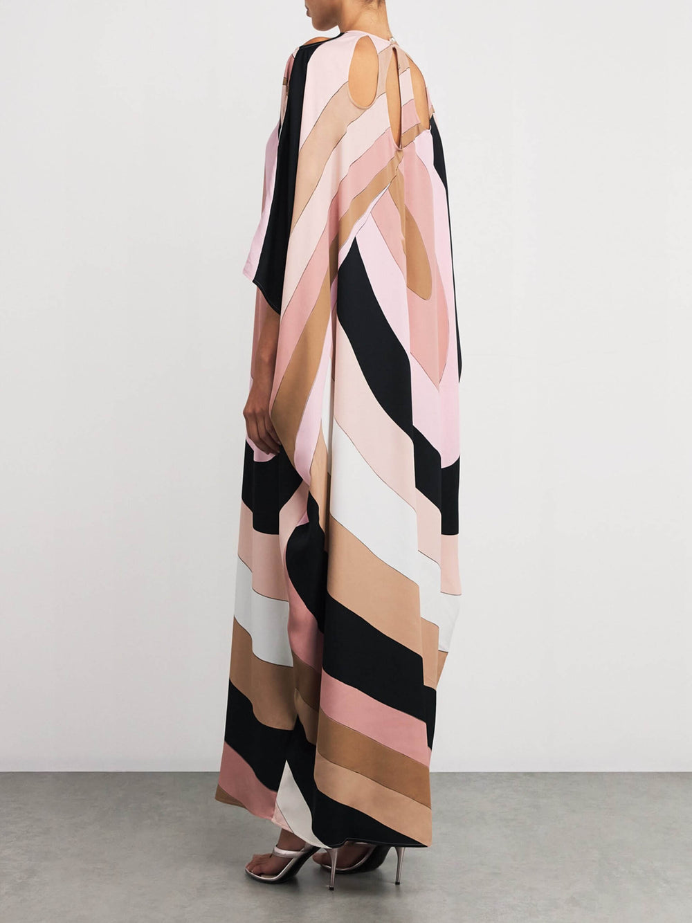 Exquisite Satin Irregular Stripe Print Maxi Dress