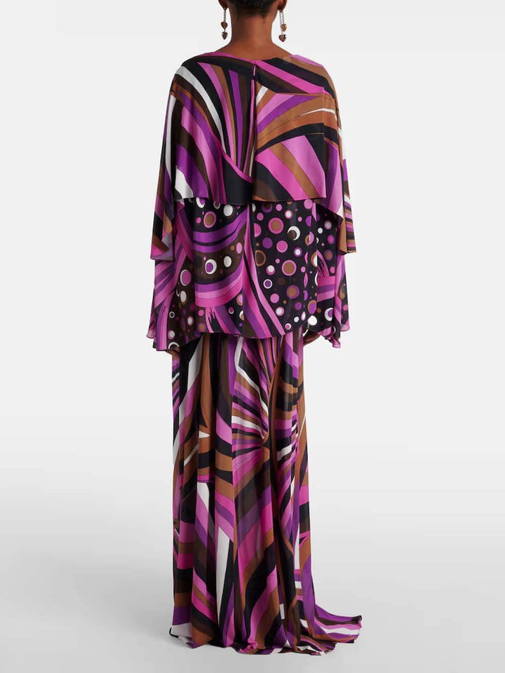 Unique Rainbow Print Layered Satin Maxi Dress