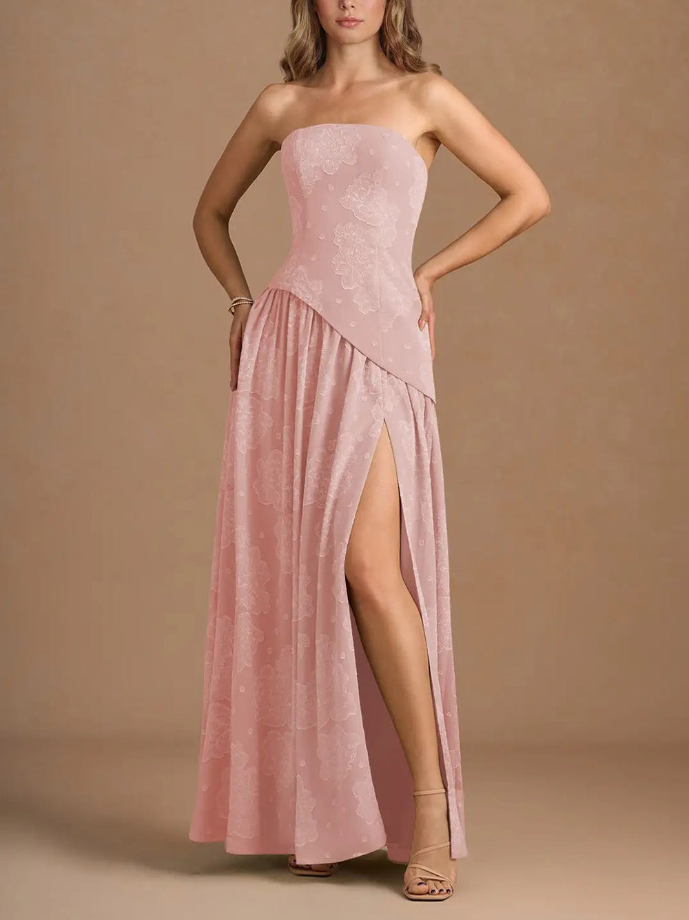 Elegant Strapless Slit Pleated Maxi Dress