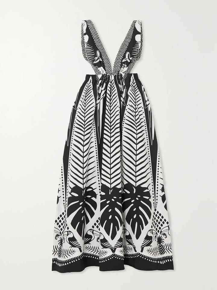 Turn every moment into an occasion with this Elegant Backless Floral Print Satin Maxi Dress, a perfect blend of sophistication and allure.