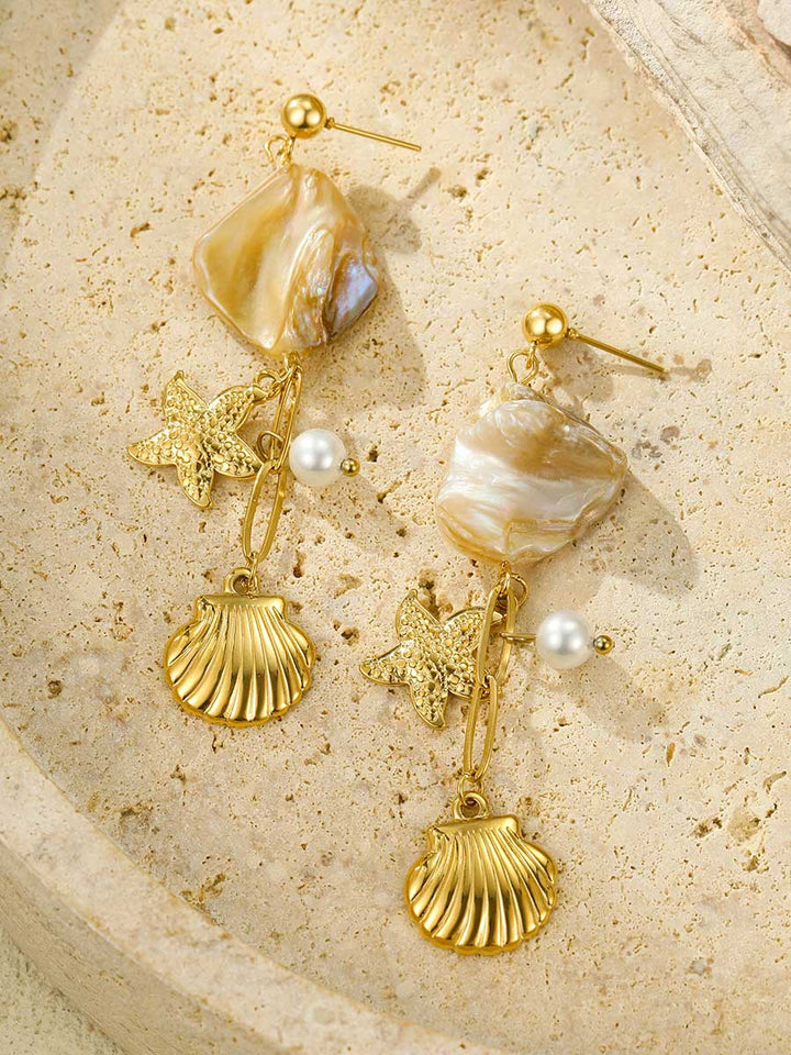 Embrace marine elegance with our shell and starfish pendant tassel pearl earrings.