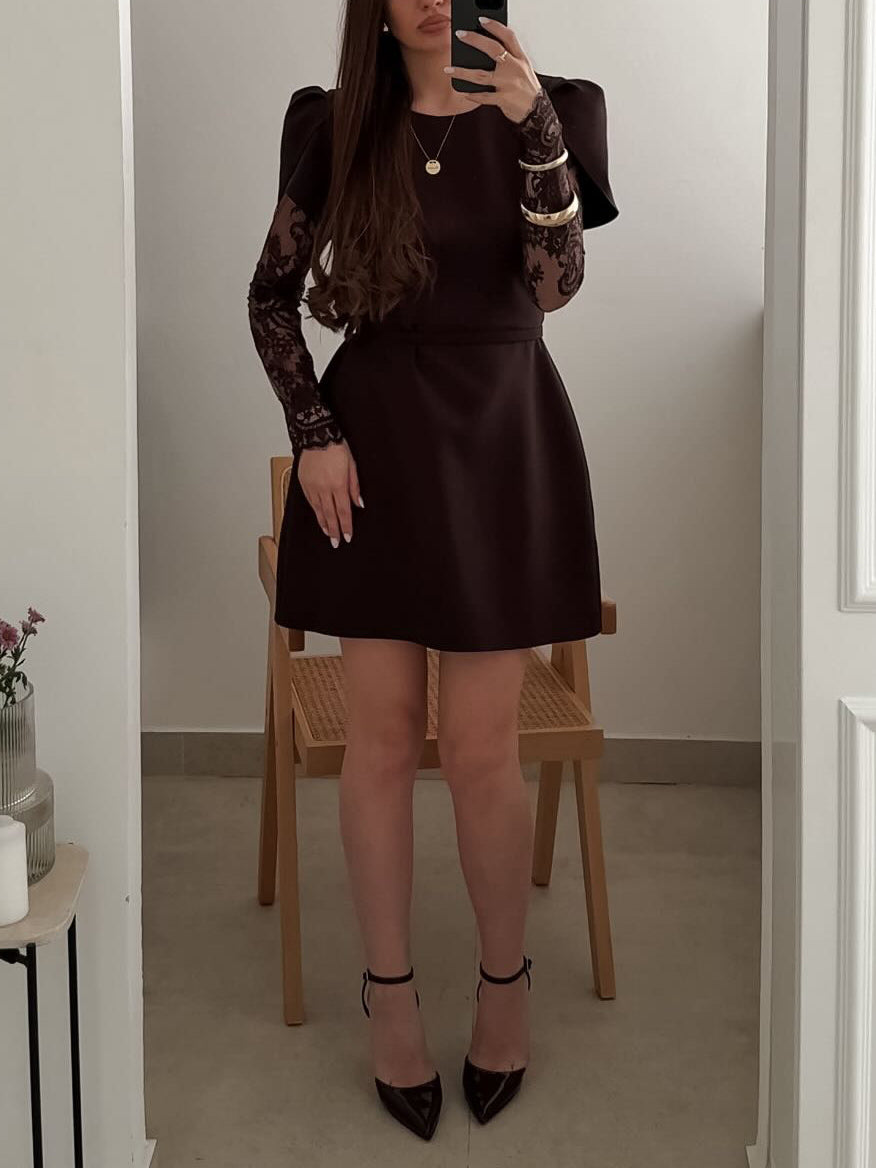 Delicate and sophisticated, this elegant lace sleeve mini dress brings timeless charm to any occasion. Featuring beautifully detailed lace sleeves and a flattering silhouette, it perfectly balances femininity and style. Ideal for cocktail parties, dinner dates, or special celebrations, this dress exudes effortless elegance.