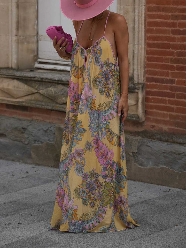 Exquisite Bohemian Print Chiffon Flowy Maxi Dress