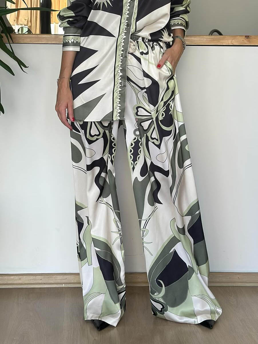 Unique Abstract Pattern Print Button-down Long-sleeved Shirt