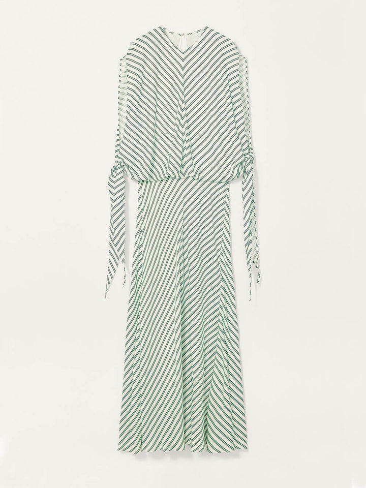 Elegant Striped Print Tie-Cuff Maxi Dress